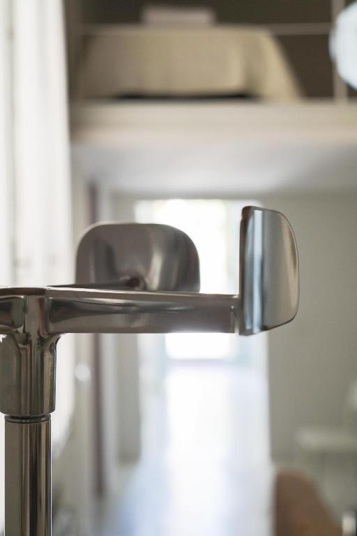 The double bedroom sits on a generous, light-filled mezzanine that creates a clear separation between sleeping and living areas without closing off the space. The single room is fully separate and works equally well as a child’s bedroom, a guest room, or a workspace for anyone needing to focus during the stay. The bathroom has a bidet, shower, hairdryer and courtesy kit. The exposed beams are original and carry the building’s history with them — this is where the bakery stood that once supplied much of Venice. The recent renovation means all of that character comes with the comforts you’d expect.