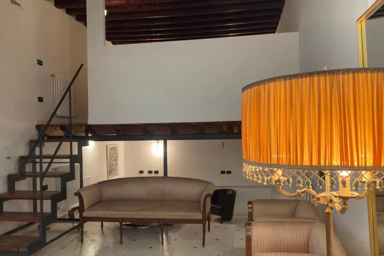 Ca de la Cenise is an apartment where the space itself makes the difference. 70 square metres arranged sensibly: a double bedroom on a mezzanine, a separate single room that can also serve as a study, and an open-plan living area with high ceilings and exposed beams. The building dates to the 1700s and has its own particular history — this was once the bakery that supplied half of Venice. The original beams are still there, a reminder that you’re living inside a piece of Venetian history. The apartment has been recently renovated, so the character of the historic architecture comes with modern comforts. It’s on the ground floor, which makes arriving with luggage or travelling with children considerably more straightforward. The position is practical: close to everything but on a quiet stretch of Castello, where everyday Venetian life carries on without much of a crowd.