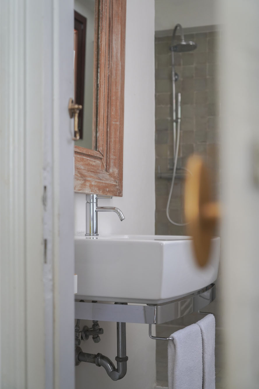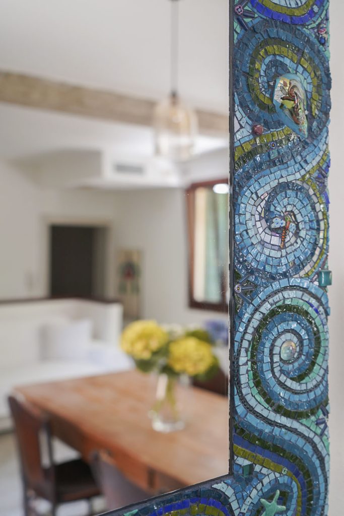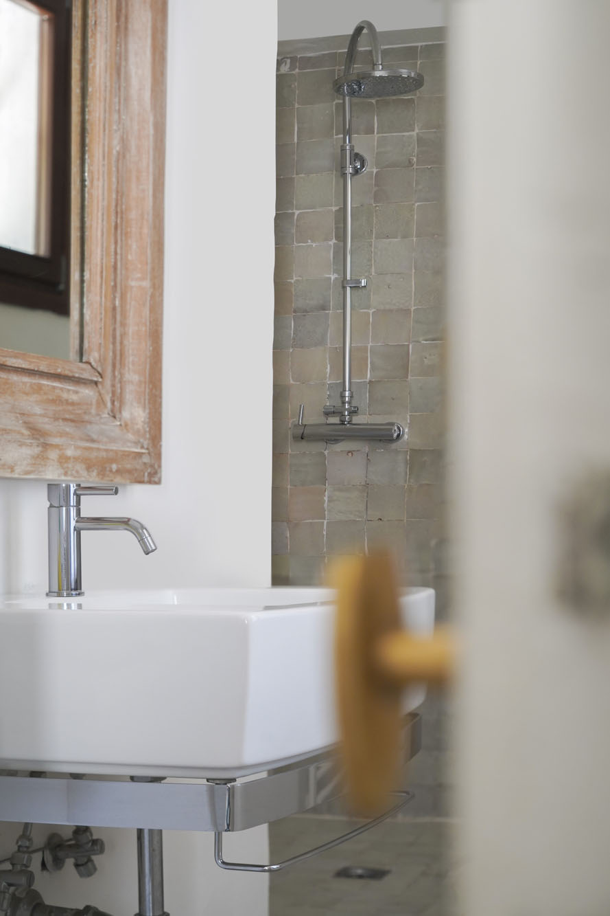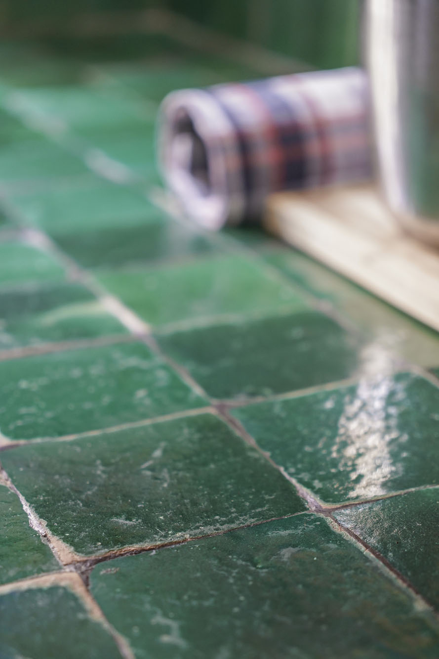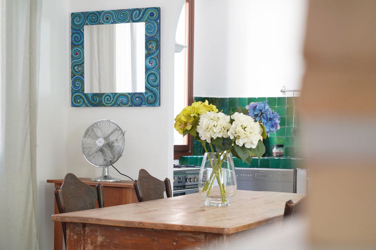 The design has been carefully considered, with a clear chromatic sensibility — most visible in the coloured zellige tiles in the kitchen. This is not a generic tourist apartment