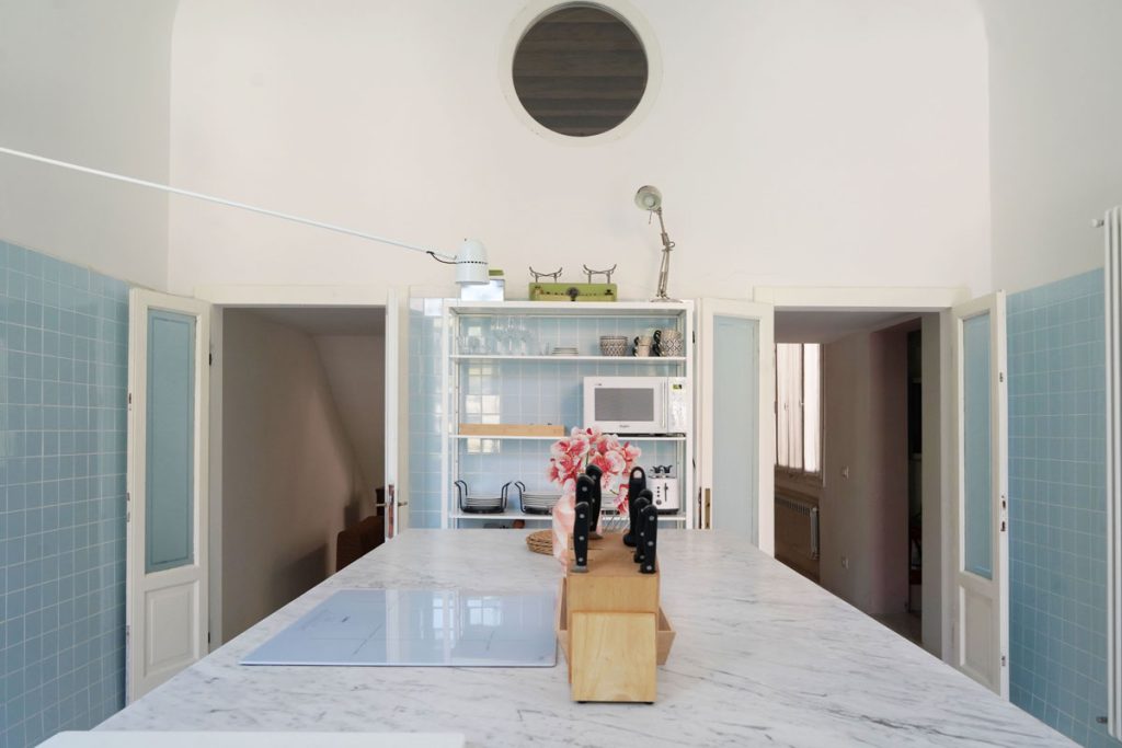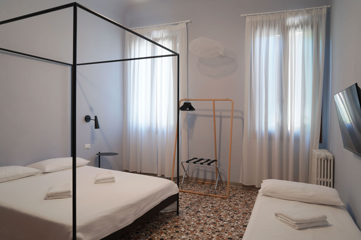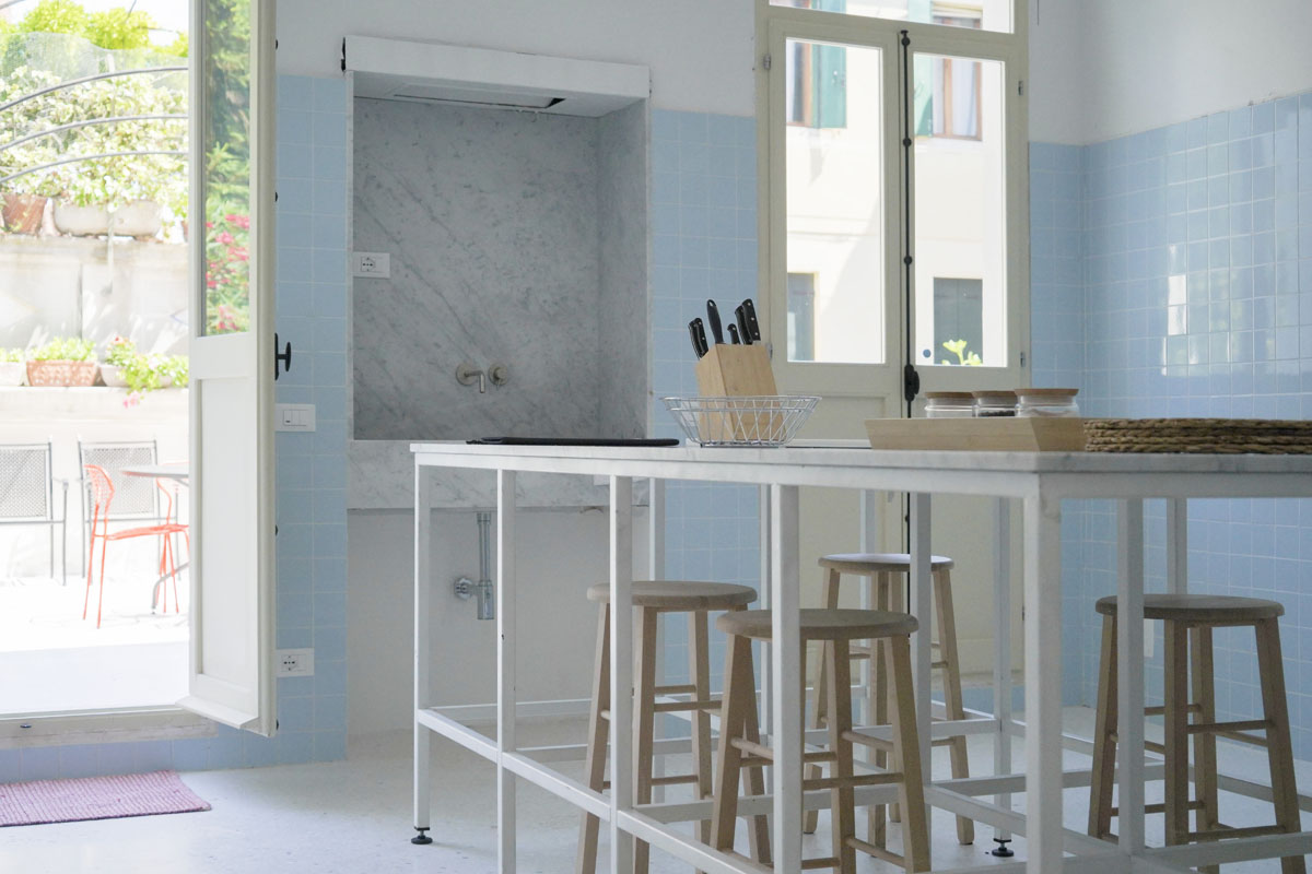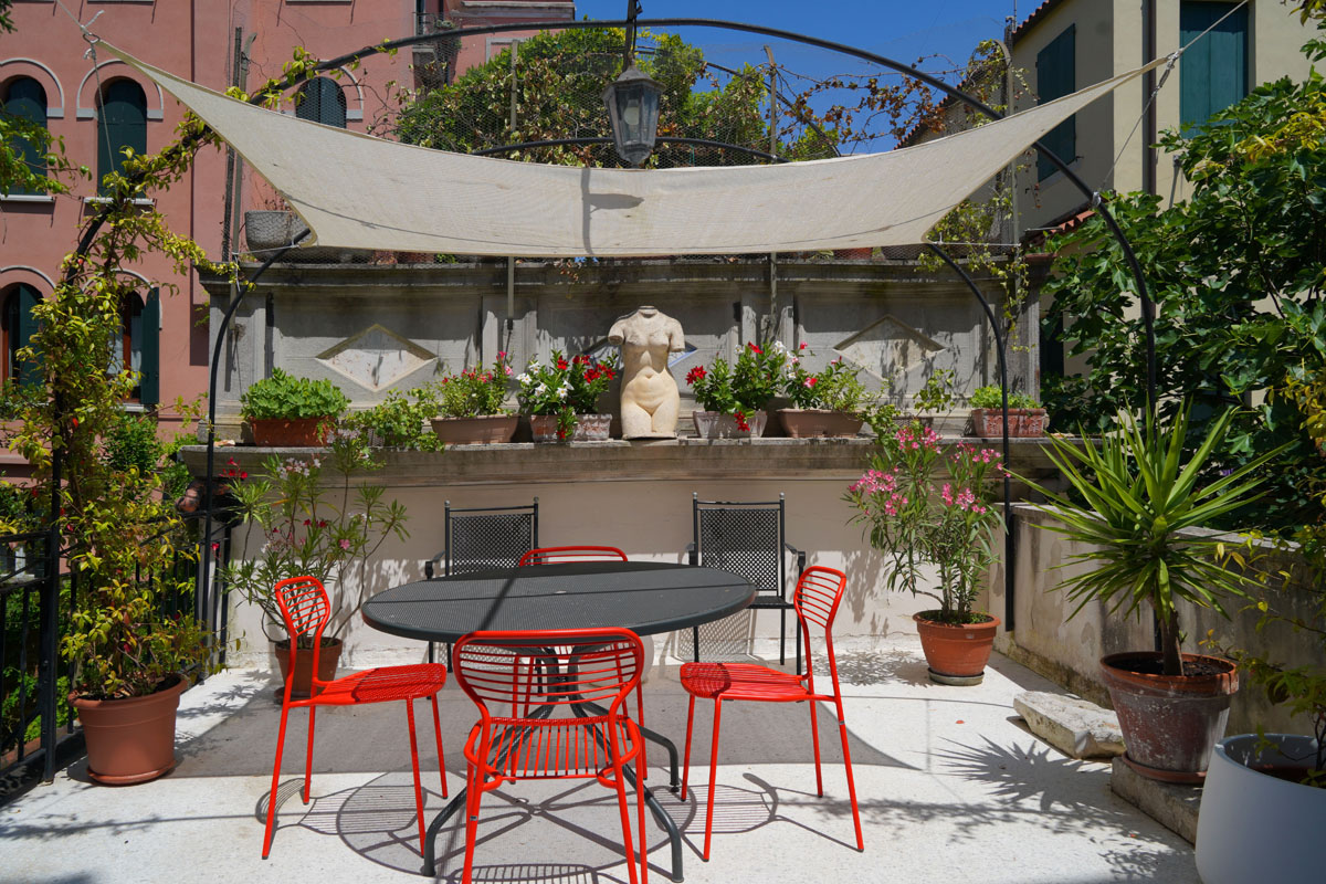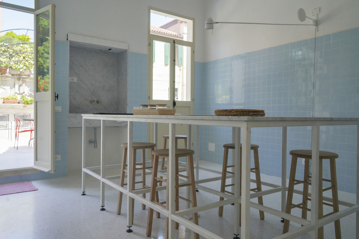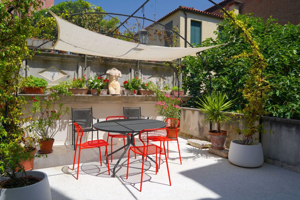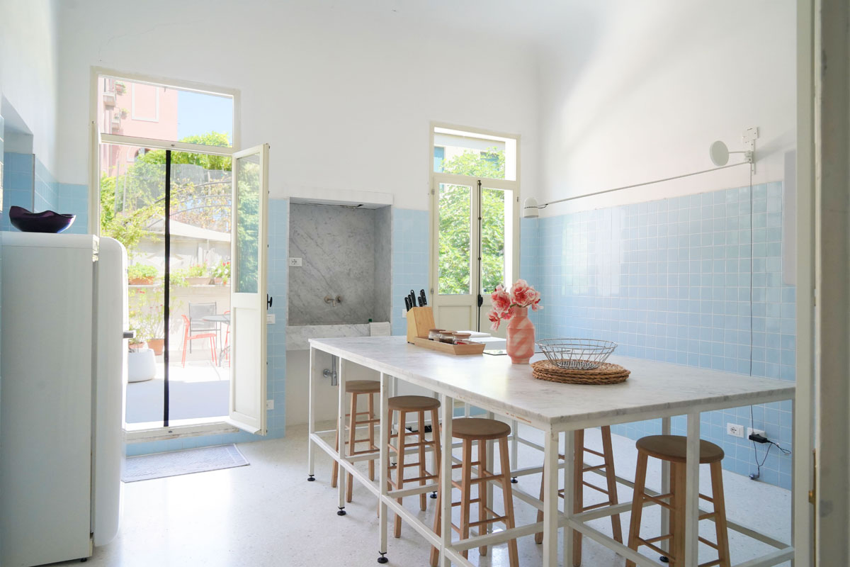 This apartment is for those who want an authentic experience in Venice, away from the pace of mass tourism. It’s a natural fit for architects, designers and creatives visiting the city for the Biennale or for work, and equally for those who simply want to experience Venice without rushing. The “stay, not just pass through” philosophy shows in every detail: the terrace for an aperitivo looking out over the Venetian rooftops, the dedicated workspace with fibre connection, the fully equipped kitchen for cooking properly. Here you’re not just a guest — for a while, you’re a Venetian.