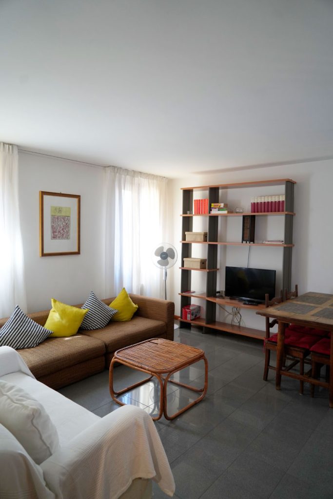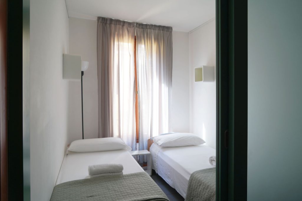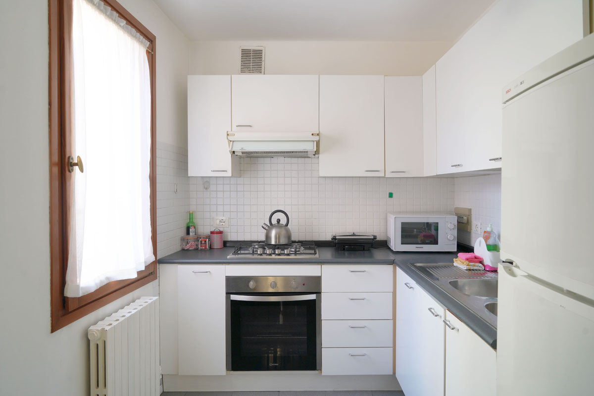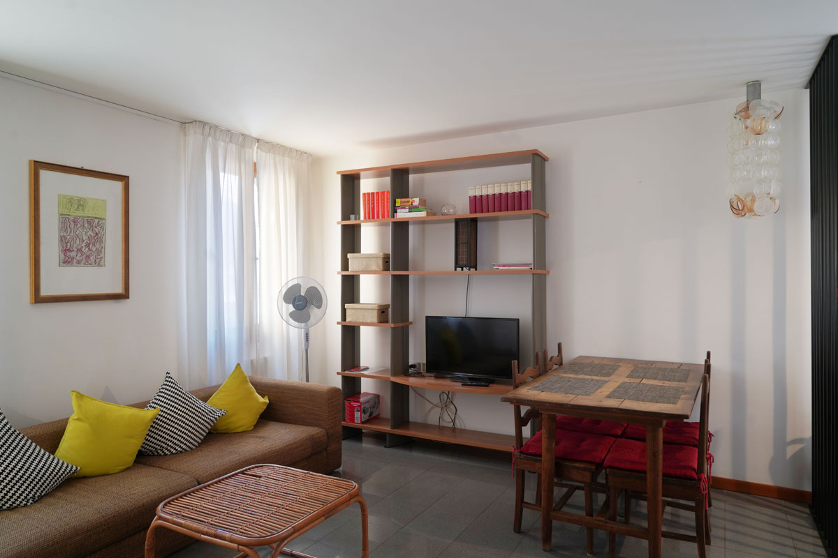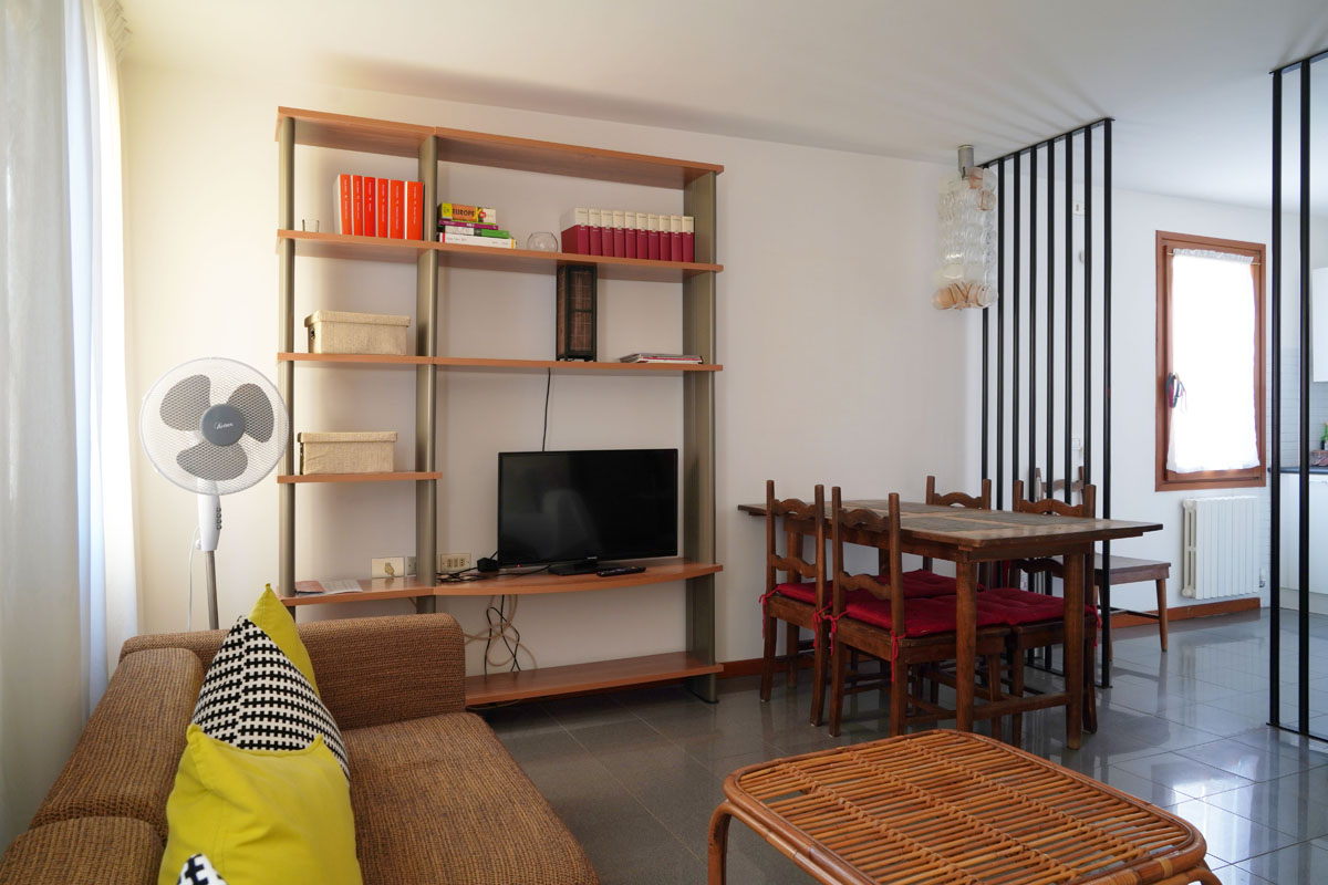 Very. Two separate bedrooms (a double for parents, two singles for children), 70 spacious square metres, a bathroom with a bathtub, a well-equipped kitchen. Cots, high chairs and children’s beds available at no cost. Piazza San Marco two minutes away works well for children too. One of our most comfortable and spacious apartments for families.